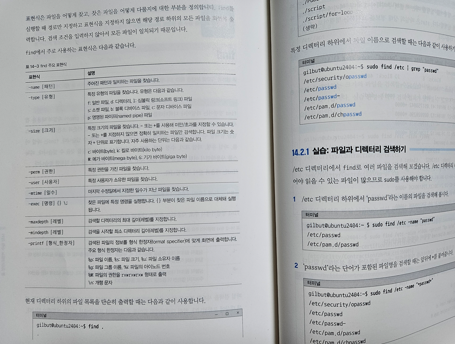 14장에서는 핵심 명령어 9가지를 배웠습니다. 텍스트 처리, 검색, 디스크 관리 등 용도별로 정리해 보았습니다.