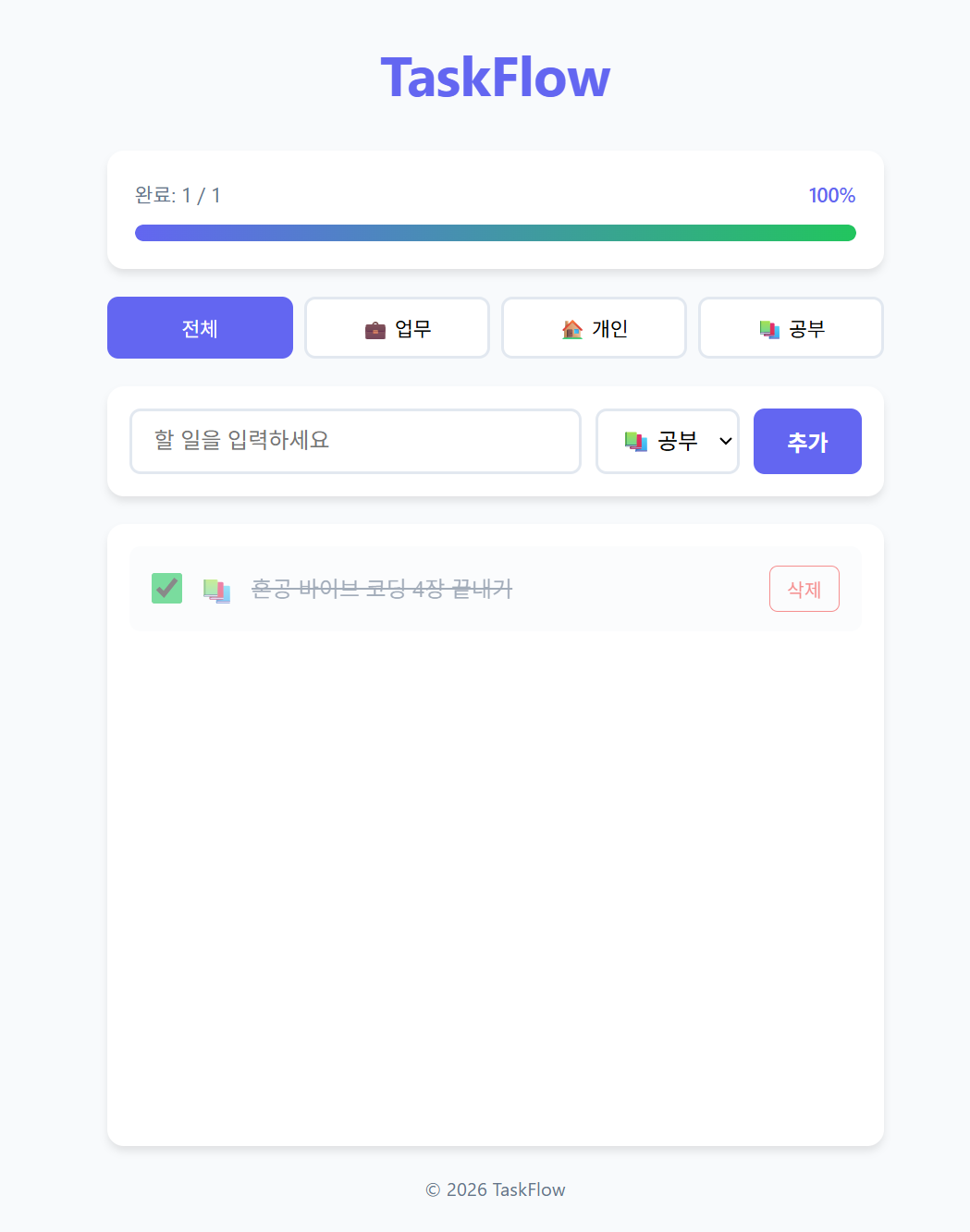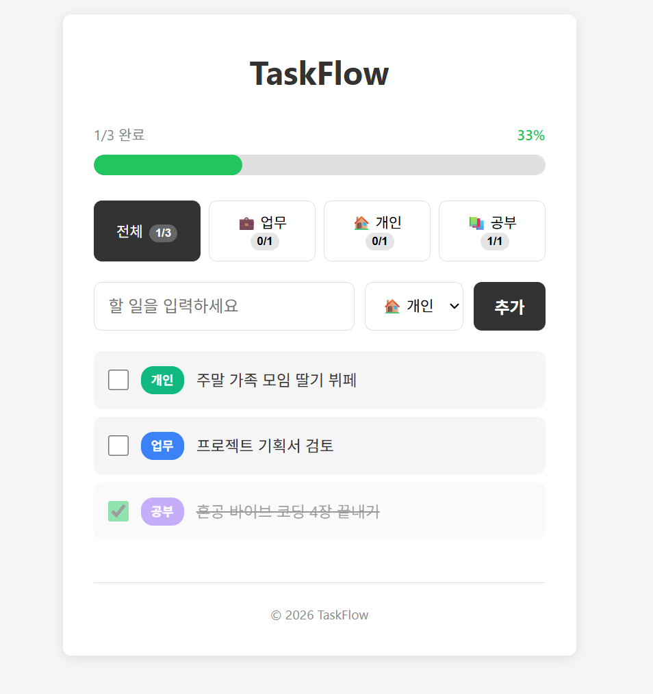 1. 앱 제목 "TaskFlow" 헤더
